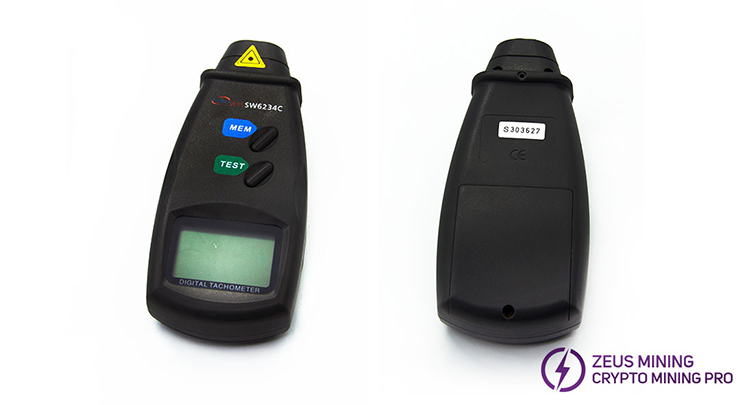 High-precision LED digital display non-contact digital laser tachometer, RPM tachometer. SW-6234C is a non-contact tachometer, non-contact designed using photoelectric technology for detecting some fast and unmeasurable objects. During the operation and maintenance of the miners, we can use it to detect the fan speed, and each fan model has a standard speed. If the fan speed is too fast or too slow, it will affect the normal operation of the miner. There is an automatic storage memory function. When the measurement is over, the maximum, minimum, and last values of the measurement are automatically stored in the meter. When viewing, you only need to press the memory button, and the measured value will be displayed on the high-definition large screen. The reading is clear. When the battery voltage is lower than 4V, a battery symbol will appear on the left side of the display, indicating that the voltage is too low and the battery needs to be replaced.