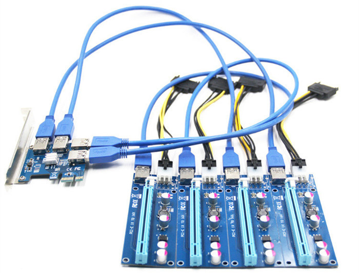 PCI-E 1 to 4 adapter card + 4 board combination set