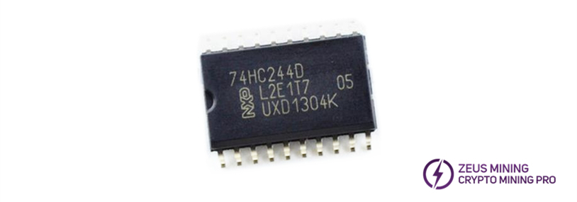 The 74HC244D has two outputs, each of which can control four of the three status outputs. The high-level output enable causes the output to be in a high-impedance off state. The input includes a clamping diode, allowing the use of a current-limiting resistor to interface with a voltage input exceeding VCC.