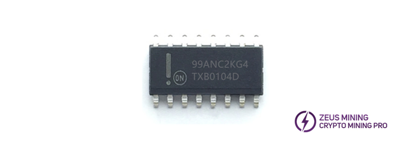 TXB0104D is a 4-bit non-inverting converter IC that uses two independent configurable power rails. When the output enable (OE) input is low, all outputs are in a high impedance state. In order to ensure the high-impedance state at power-up or power-down, OE should be connected to GND through a pull-down resistor. The minimum value of the resistance is determined by the current source capability of the driver.