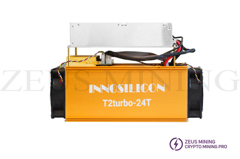 Innosilicon T2 Turbo adopts mining SHA-256 algorithm with a maximum hashrate of 24Th/s for a power consumption of 1980W.