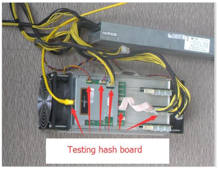 2. Make sure that one tested hash board is connected to the control board and power supply, and disconnected from the remaining two hash boards.