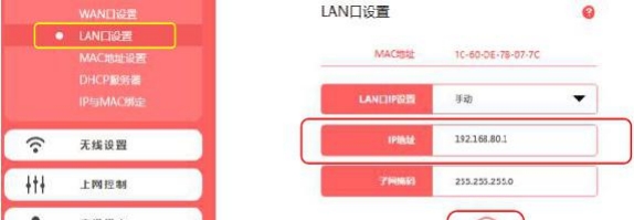 1) Open your router configuration, set the router's LAN port to 192.168.80.1, the general router defaults to 192.168.1.1 or 192.168.0.1. So if it is 192.168.80.1, there is no need to modify it. After the modification, restart the router and connect the wing bits with the network cable.