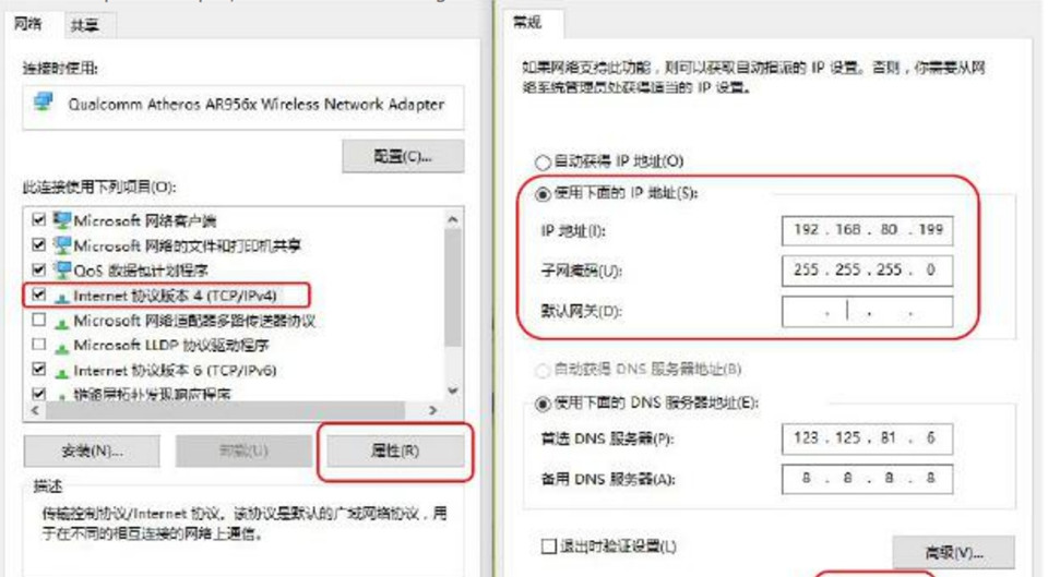 2) Set the IP of your computer's wired network card to 192.168.80.199, subnet mask 255.255.255.0, and leave the gateway blank. First, point the network neighbor to find the local connection, select the Internet protocol point properties, open the window settings, click OK and then OK, and finally right-click on the local connection point to repair. Ensure that the settings take effect in real-time.