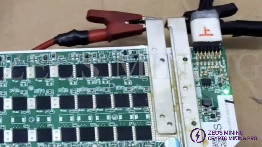 3. Measure the CLK signal voltage (the CLK signal voltage is transmitted from the first chip to the last chip); the normal signal voltage is 0.9V. Generally, the investigation starts from the last chip corresponding to each group of CLK signals, finds the ASIC chip with abnormal signal voltage, and replaces it.