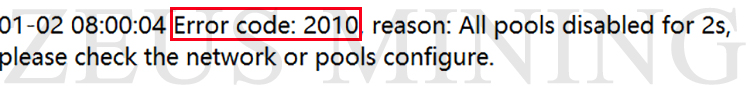 When the log error code shows 2010, the reason is all pools disabled for 2s; please check the network or pool configuration.