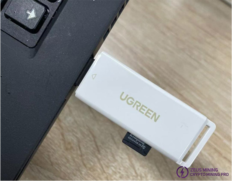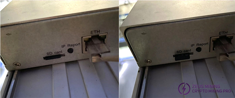 Power off the miner (unplug all power cables) and insert the TF card that has been made.