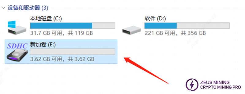 After the card reader is inserted into the computer's USB port, the computer will prompt for a new device and display the disk letter corresponding to this TF card.