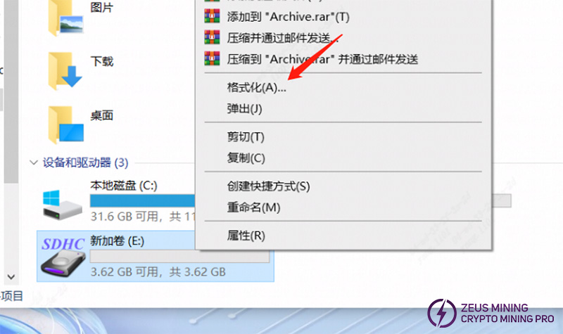 Format the inserted memory card to FAT32 format, find the corresponding disk of the TF card, and click Format.