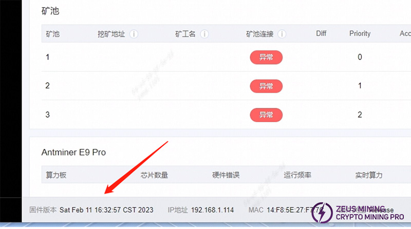 After unplugging the TF card, re-power the control board, boot up the machine, and log in backstage to check whether the current miner version is the card-swiped firmware version.