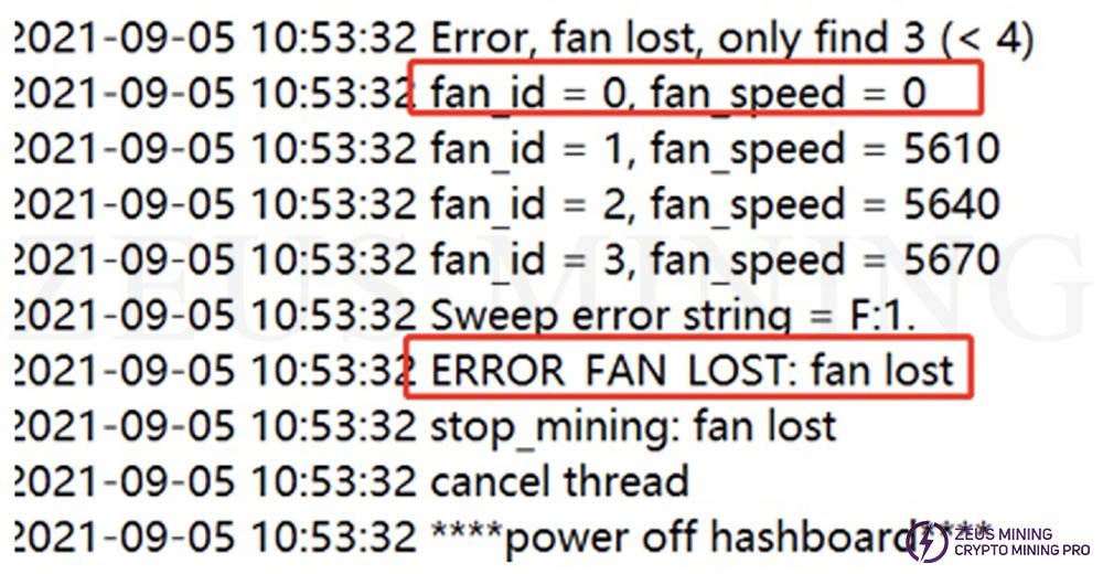 Normally caused by temperature sensors on the hash board. It may be fixed by unplugging and reconnecting the wires. If that doesn’t solve the problem, try to fix it.