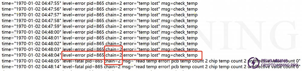 If the log returns: “ level=error pid=865 chain=2 error="temp lost" msg=check_temp ”