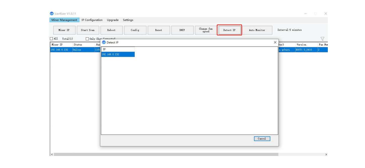 2. Click the [Detect IP] button and long press the machine's button for 1-2s after the pop-upwindow to get the machine IP.