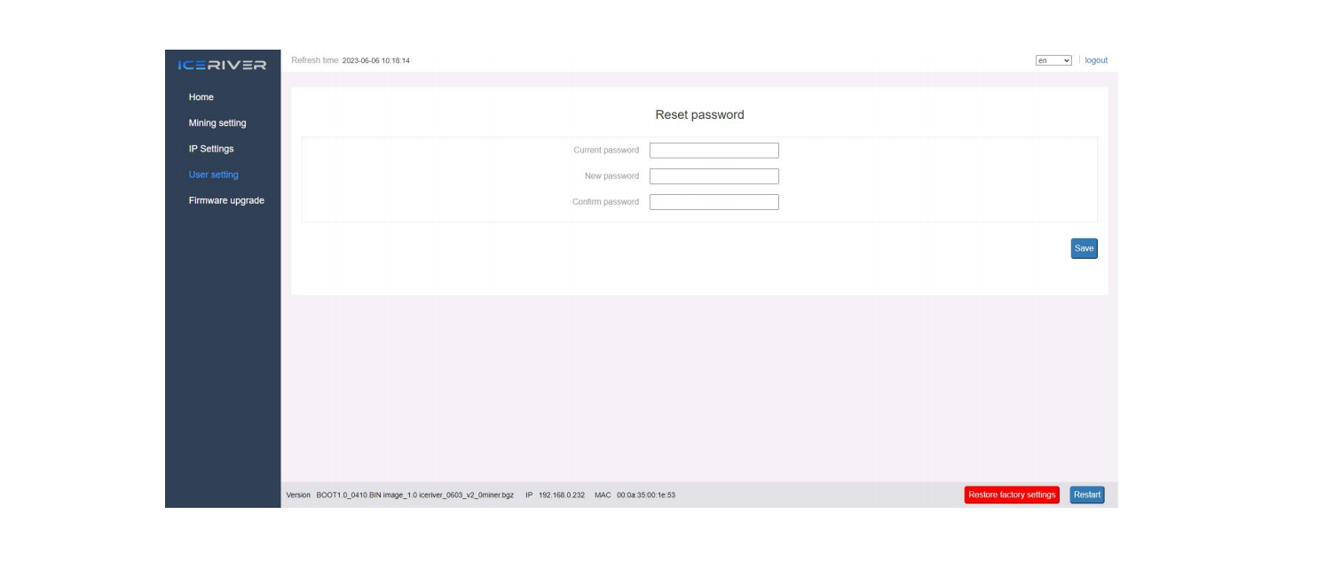 To protect your property security, please change the miner password after the first time you turnon the machine.
