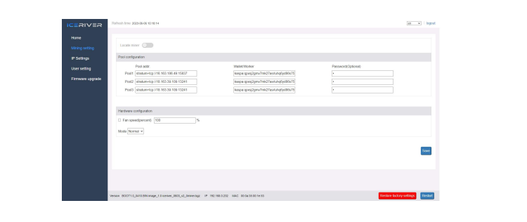 *The default pool configuration is the configuration of our company when testing, pleaseconfigure your own mining wallet address before you start mining, please do not use the default configuration.