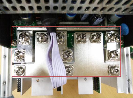 Check if the conductive copper strips are correctly connected between the power supply and hash board, ensuring they are not loose. The washers on the fixing screws should be parallel aligned with the edges of the copper strips.