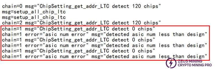 2. If we replace the cable, the kernel log shows that Chain 2 detects 0 chips and Chain 1 detects 120 chips. At this time, it can be basically determined that the hash board connected to the CH2 interface is faulty.