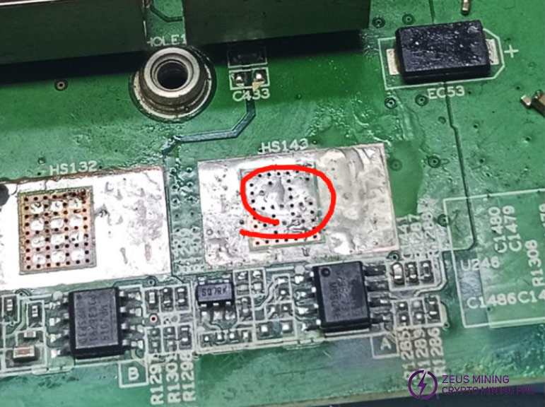 (6) If it is still abnormal, we use the same method to remove other chips in the corresponding domain of the LDO chip. It is recommended to start from the ASIC next to the LDO chip. If the ground value of the 5th pin of the pad returns to normal after removing the faulty ASIC chip, then solder the 0.8V LDO chip to the hash board.
