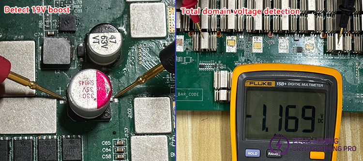 (2) After the above tests confirm the fault. First, check the 19V boost and total domain voltage. If the power of the hash board is normal, proceed to the next step.