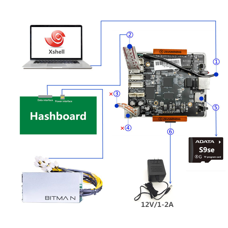 ⑤: TF program card (for each model of miner hash board, you need to use a different TF program card)