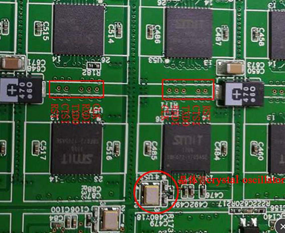 Use the test program to read the chip ID. If it is found that there are only three chips or less and the chip ID cannot be read, use an oscilloscope to check whether each chip has a clock input. Because there is no clock input, the test program will skip the chip. If it is found that part of the chip ID is read, it will be terminated. In addition to checking the clock, you must use an oscilloscope to check whether there are waveforms in TXDO and RXDI to determine whether the signal is normal and locate the position where there is no waveform. Check the level conversion circuit composed of diodes and pull-up resistors if it is a position across the voltage domain. If there is no problem, the adjacent chips at this position may be poorly soldered or damaged.