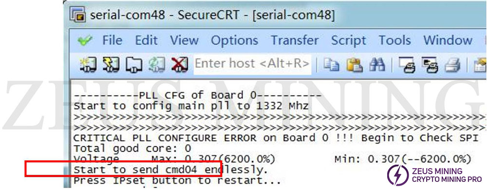 When E7:0 occurs, you need to locate the problem through the maintenance software. The positioning method is the same as E0. The test time is when the program runs to "CRITICAL PLL CONFIGURE ERROR on Board 0 !!! Begin to Check ..."