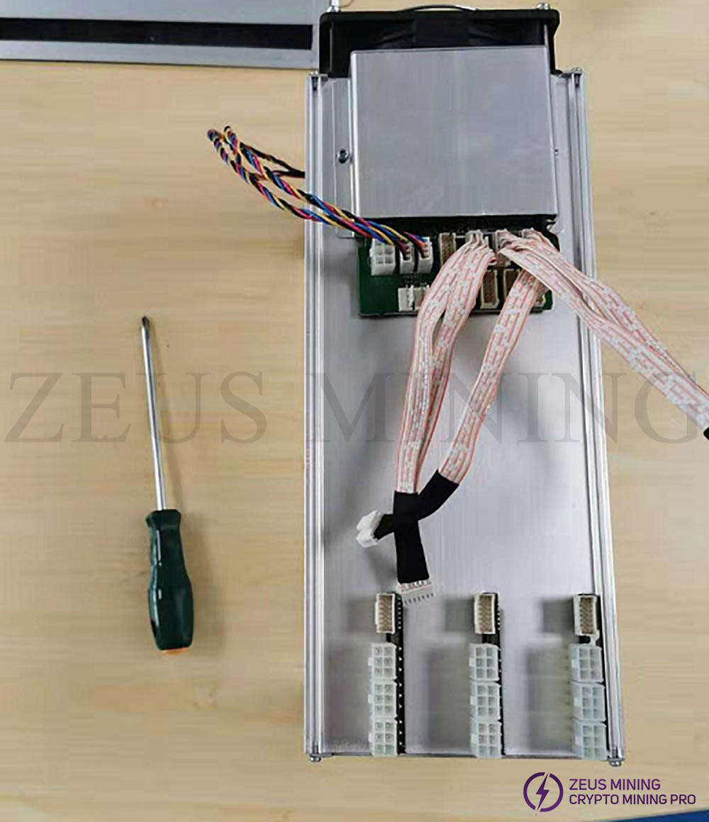 2) Unplug the heat sink and hash module assembly (be careful not to twist the socket pins on the hash module when unplugging).