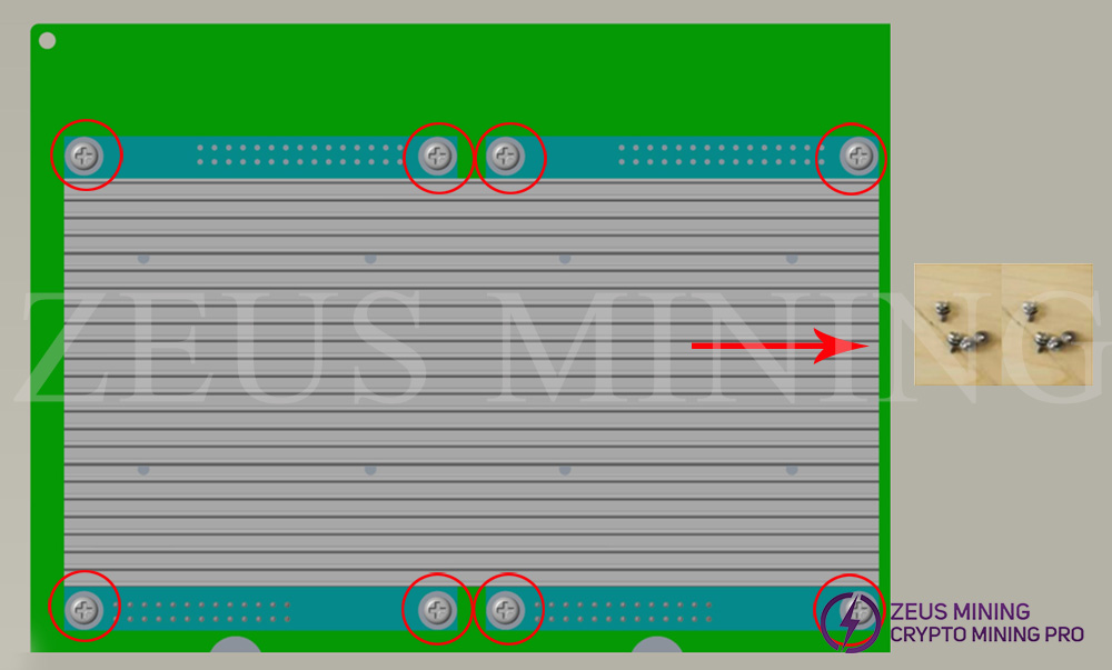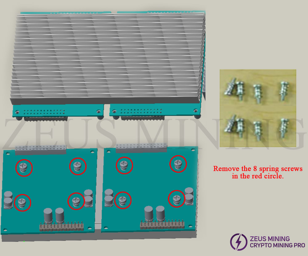 6. Remove the spring screws of the hash module, remove the heat sink, repair the hash module, and complete the disassembly.