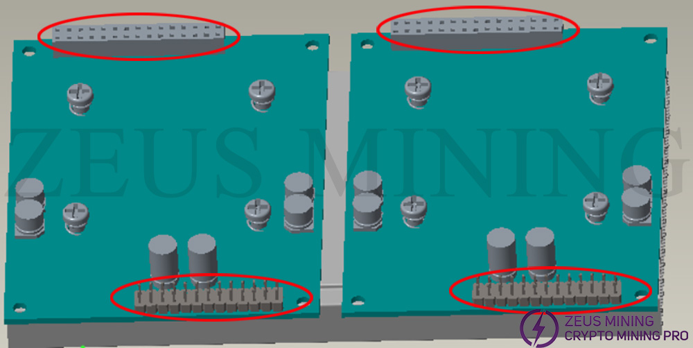 2. Reinstall the hash module to the power board: Align the hash module and install it on the power board; pay attention to the direction, and cannot be installed in the reverse direction;