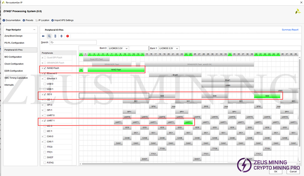 As shown in the figure above, the selection of NAND Flash, SD cards, and UART1 is as above, and the green indicates that it has been selected.