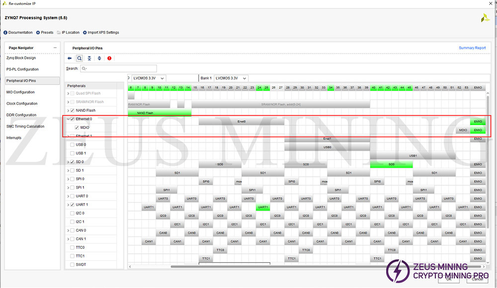 As shown in the figure above, the mesh is checked MDIO, and all choose EMIO. For tube feet, please refer to the top.xdc file in the project.