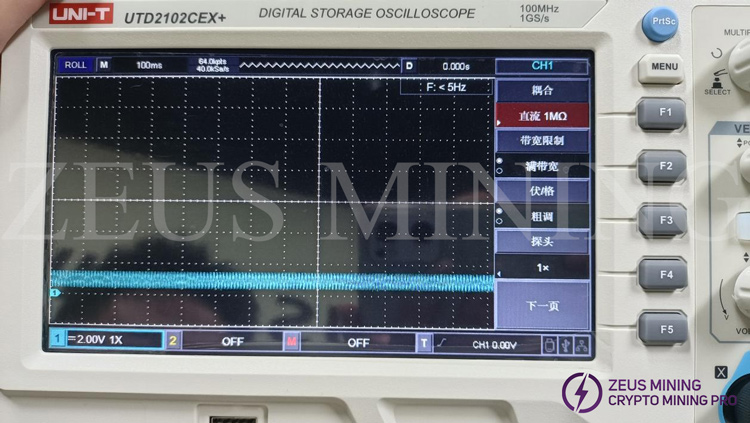 Signal test: The signals of the chips on the hash board are connected in series, and the signals of each chip are CLK, C, R, and D. It is necessary to test whether each chip has an output signal. The oscilloscope is mainly used to test the CLK signal, and the corresponding waveform is shown in the figure below: