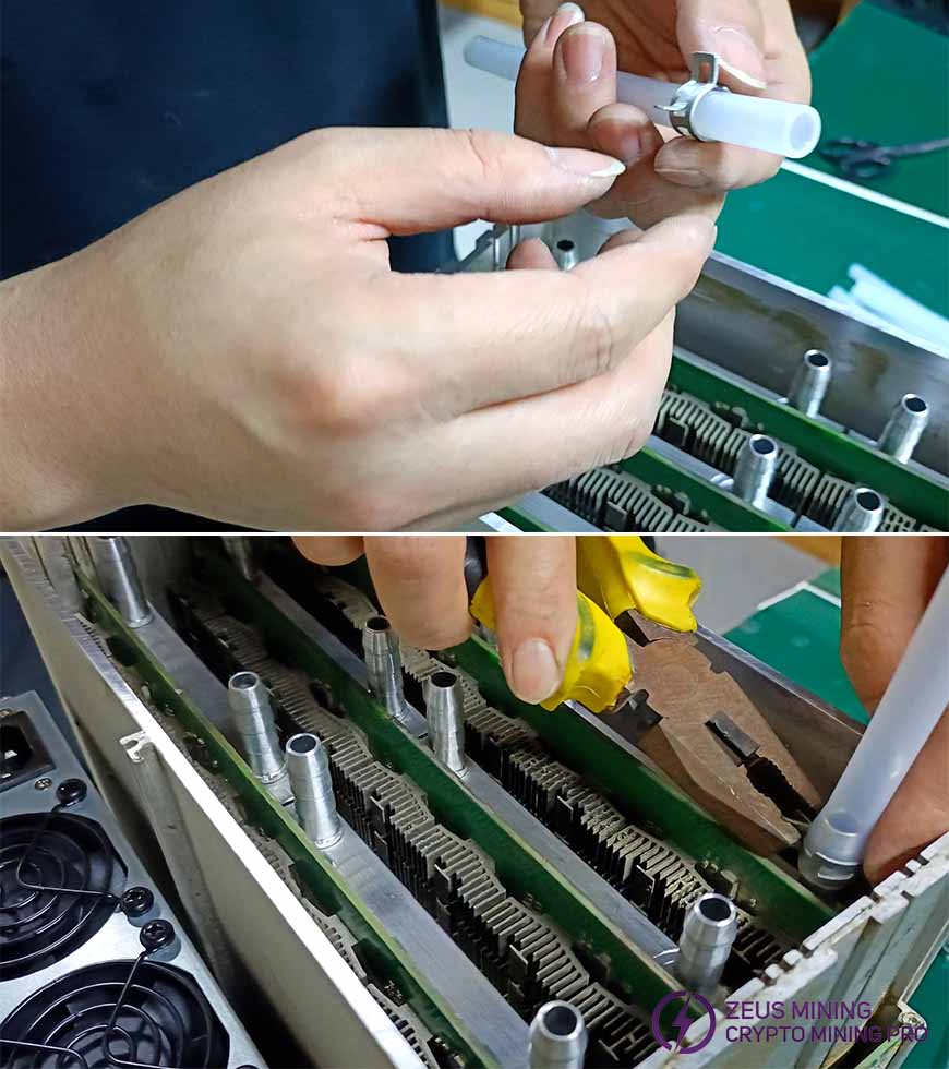 7. Next, we need to install water pipes for the D7 water cooling plate. The length of the water pipes can be cut according to the actual situation, and the water pipes should be fixed with clips.