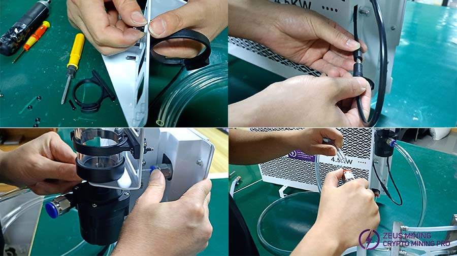 9. Connect the radiator water pump, and the length of the water pipe should be cut according to the actual situation. It is also necessary to fix the water pipe clamp to ensure no water leakage.