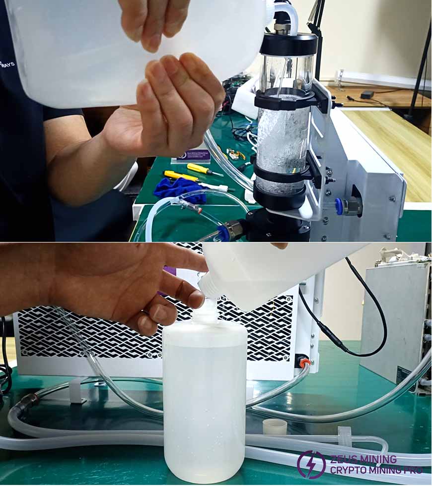 11. Start adding water. You can add water several times because the pipe is curved and the water flow is slow. You can stop when you see that the water tank's water level does not drop. Now the modification of the water cooling plate has been completed.