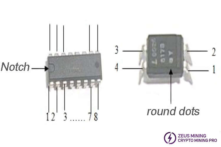 PIN identification: Face the letters and codes on the front of the IC to yourself, so that the positioning mark (a dot or notch on the package surface) faces the lower left. The pin at the bottom left is pin 1, and the other numbers are arranged in counterclockwise order.