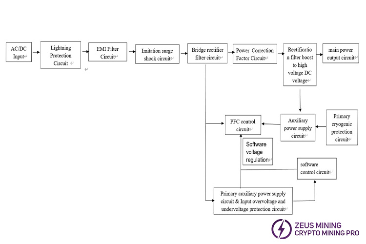 The main circuits of the power supply are the EMI circuit, bridge rectifier, power correction circuit, flyback circuit, auxiliary half-bridge LLC resonant circuit, auxiliary synchronous rectifier filter circuit, main half-bridge LLC resonant circuit, main synchronous rectifier filter circuit, MCU control circuit, protection circuit.