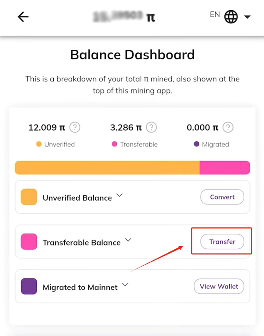 Step 2: Click Transfer, and then follow the steps below to prepare to transfer your Pi Mobile balance to the mainnet.