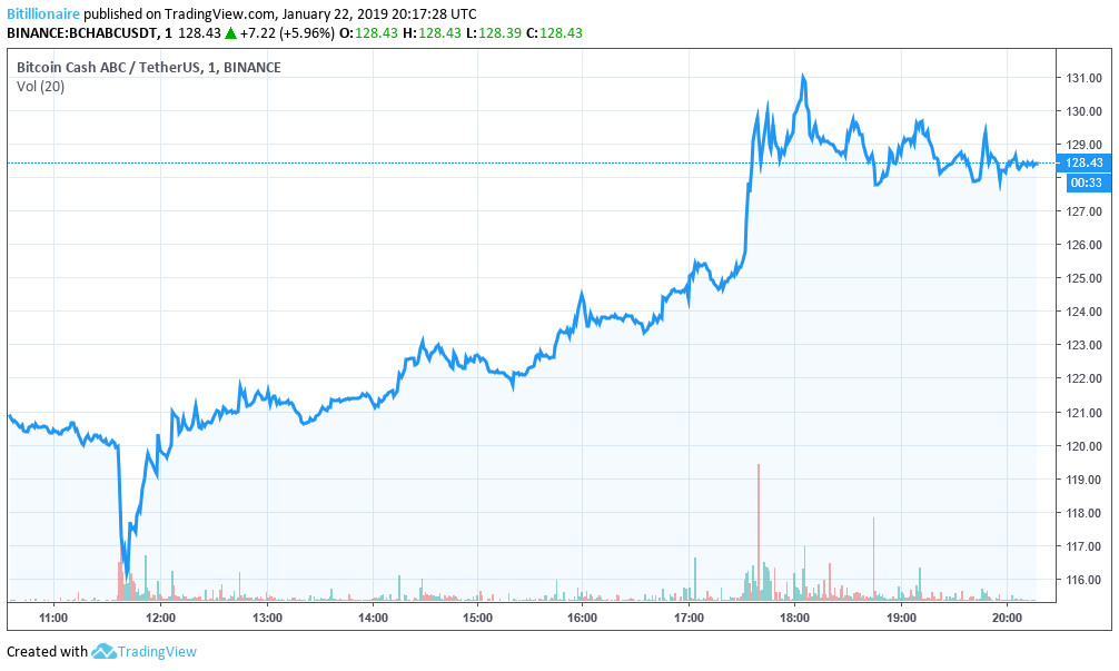 BCH saw wild trading around lunchtime, dropping to $116 and then posting a recovery to nearly $130.