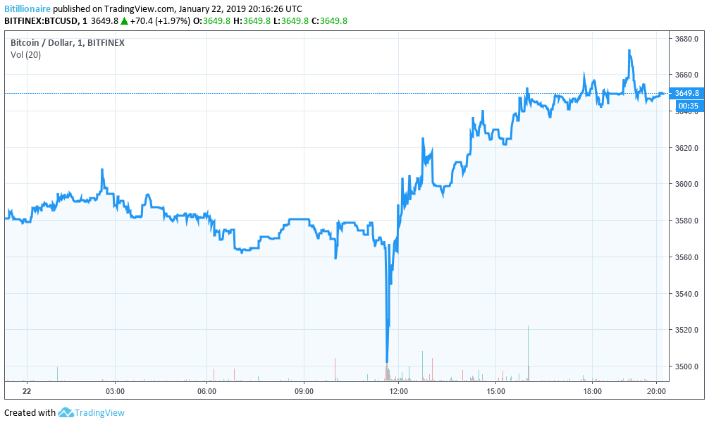 Bitcoin recovered from a low of around $3,500 at lunchtime.