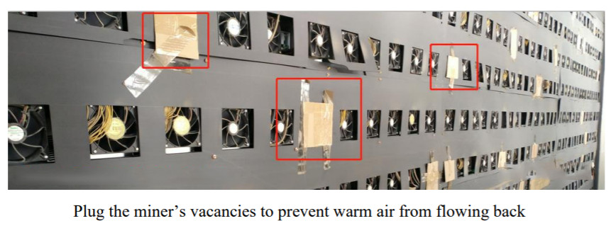 (4) If the factory shelf has cold heat isolation, the vacancy after the miner is removed should be blocked to avoid warm air return. In addition, the miners off the shelf should be dust-proof and moisture-proof, placed smoothly and neatly in the designated area, wait for on-site repair or contact the nearest repair center.