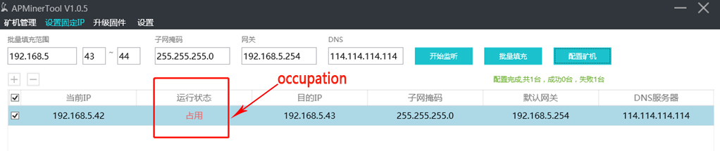 Suppose the miner automatically obtains the range of 1-120 and the fixed IP needs the range of 1-120 (fixed 1-120 is for the convenience of subsequent operation and maintenance). In that case, the software will display the occupation at this time. To solve the problem, perform the following steps.