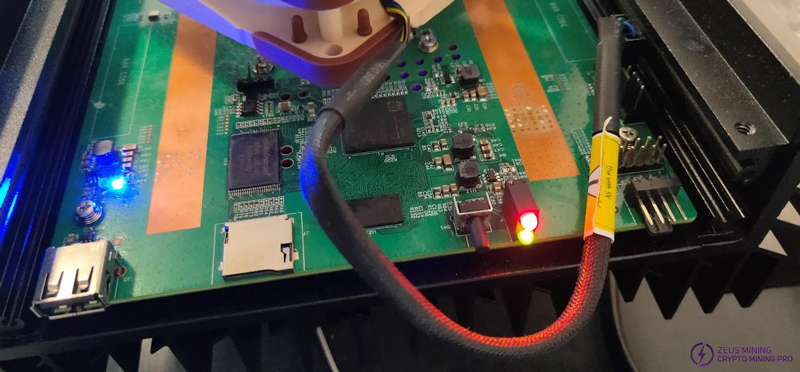 Only one blue LED lights up, indicating that there is no abnormality in the control board part's powering, but the system does not start. At this time, we need to check the FLASH soldering or replace the FLASH chip.