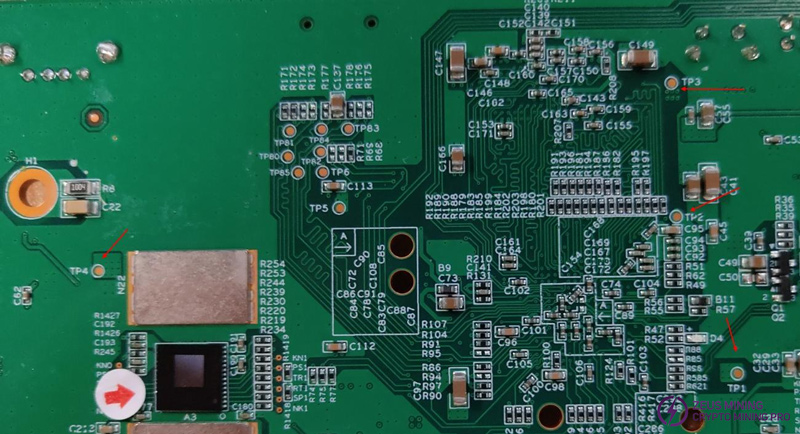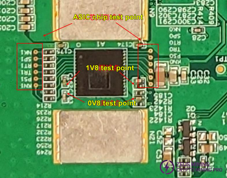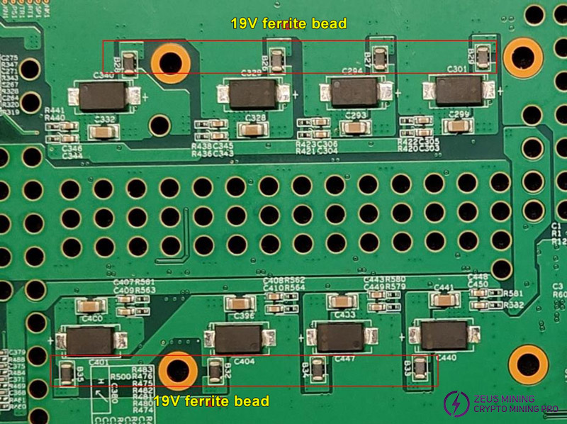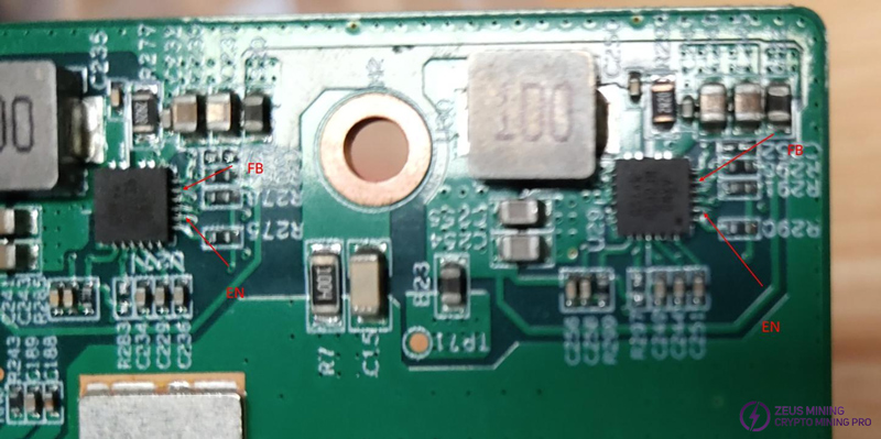 Step 1: Check whether 19V is sent to each power input terminal, and check whether there is a 19V powering before and after the 8 Drmos resistors, as well as the 5V public powering, and whether the 1.8V hashing power input is 19V.