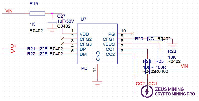 Solution: Check the voltage of the U7 chip pin. If the voltage is within the normal range, check whether the adapter supports the 20V output in the PD protocol; if the powering pin voltage is abnormal, disconnect the series resistor to determine whether the U7 is abnormal and causes the voltage to drop; if the communication pin voltage is abnormal, check the voltage before and after the series resistor.