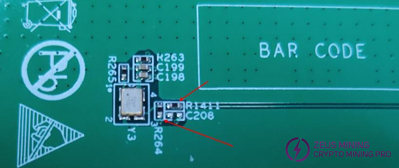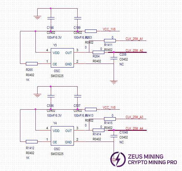 Solution: Check the path from the crystal oscillator to the ASIC chip end, and focus on checking the series resistance of the crystal oscillator end, and check whether the voltage is 0.9V one by one. Check the voltage before and after R1411, R264, R1415, R1414, R214, R227, R234, and R215 one by one.