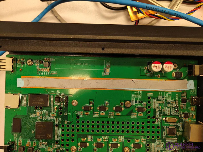 Step 4: Paste the thermal strip, 9*160*0.5MM, first cut the required length of the thermal strip. Remove the protective film on one side and choose any end to paste. Pay attention to evenly cover the surface of the ASIC chip. After pasting, remove the protective film on the other side.