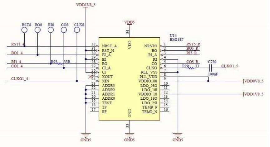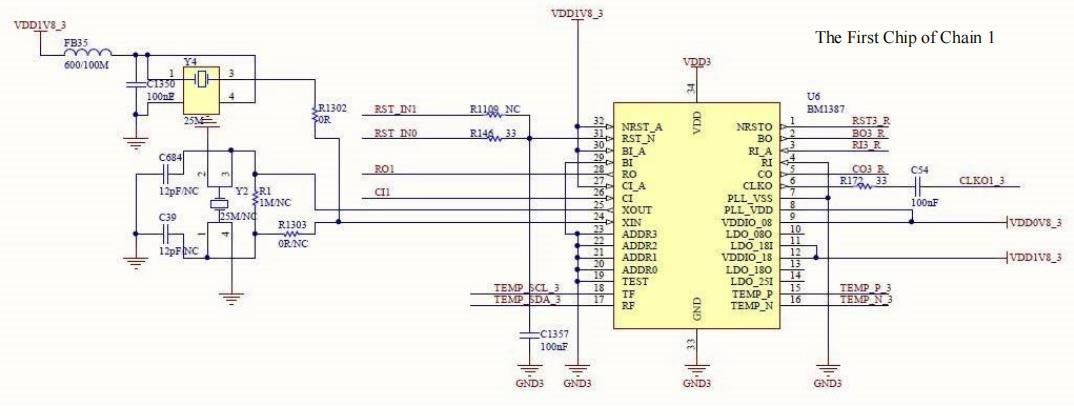 2. BM1387 chip has built-in voltage-reduction diodes, decided by designated pin of the chip.