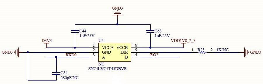 Hash board 3.3 end, and changes into TX (CO), RX (RI) signals through resistive voltage division; the electrical level of all IO mouth pin ends is 3.3V, and changes into 1.8V through resistive voltage division.