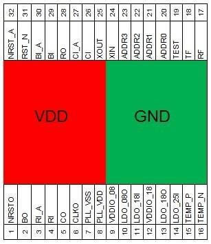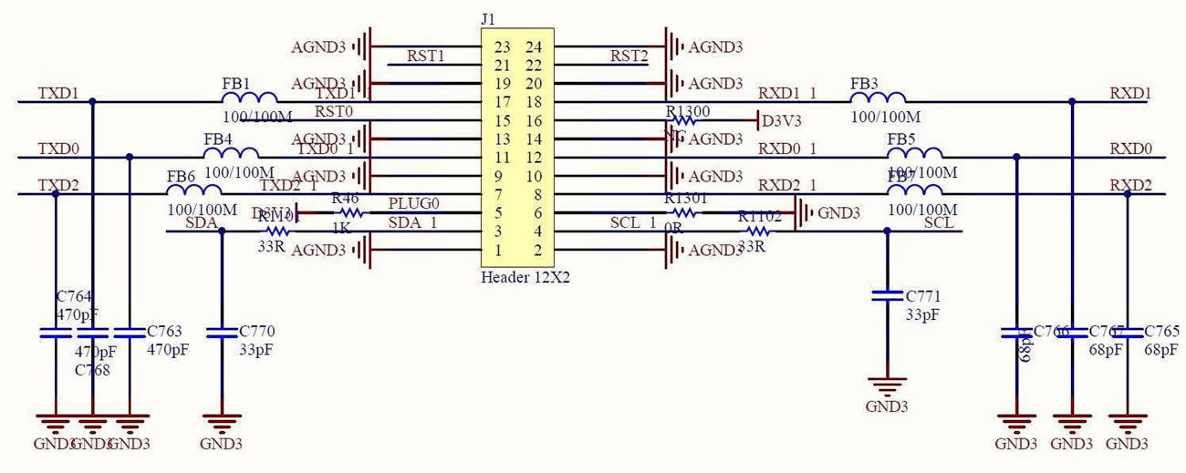 Pin 15 (RST0), pin 21(RST1), pin 22 (RST2): reset signal 3.3V end, and changes into 1.8V RST reset signal through resistive voltage division.